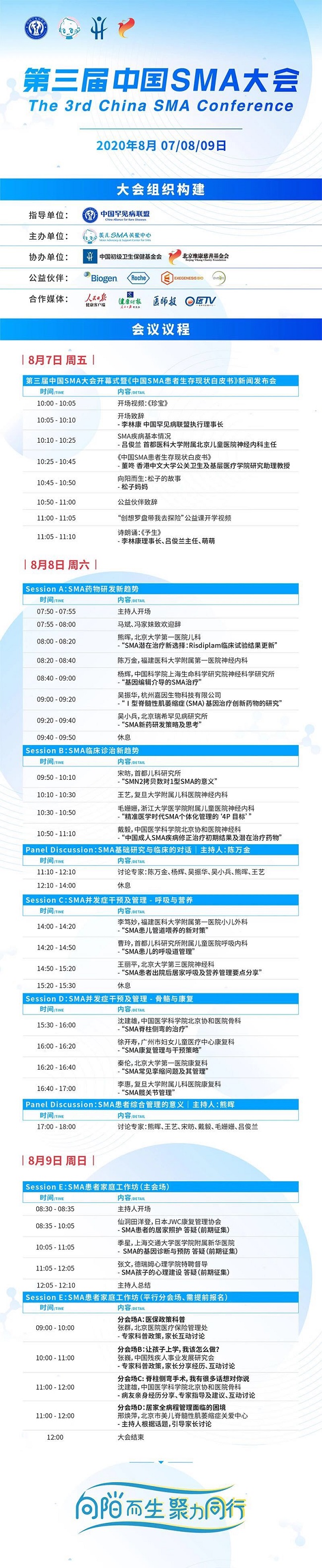2020年8月7日-9日,第三届中国SMA大会将在北京举行,本届大会由中国罕见病联盟指导,中国初级卫生保健基金会、北京维康慈善基金会协办,并于人民日报健康客户端、人民日报社健康时报、医师报多个线上平台直播。美儿SMA关爱中心将邀请来自国内外从事SMA药物研究、遗传学研究、患者诊治、基因筛查、产前诊断、康复治疗等相关领域的资深专家“云”聚一堂,就两年来国内外SMA领域的最新研究进展和专业发现及经验进行交流分享,向SMA群体提供最权威的资讯更新及专家指导建议,同时也将在各相关方的共同努力下,继续推动中国SMA相关领域的发展。