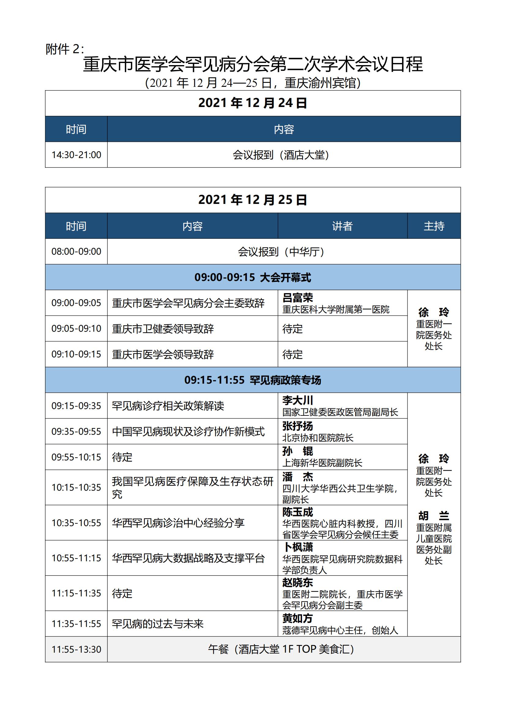 以下为重庆医学会罕见病分会第二次学术会议日程: