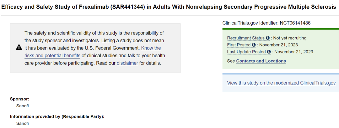 2023年11月21日,赛诺菲在Clinicaltrials.gov网站上注册了Frexalimab治疗多发性硬化症的两项三期临床试验。