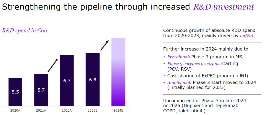 赛诺菲预计2024年研发费用大幅增长,主要原因就是Frexalimab等新启动的三期临床。此外,赛诺菲的OX40L抗体Amlitelimab也将在2024年启动三期临床。