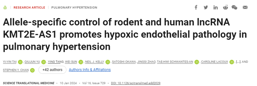 “新的研究成果将有助于识别具有较高肺动脉高压遗传风险的人,并启动精准医疗实践以提供定制治疗,”心脏病专家、医学博士、资深作者Stephen Chan说,他还担任匹兹堡大学血管医学Vitalant主席和血管医学研究所所长。 肺动脉高压包括各种原因引起的一系列病症,表现为肺动脉和右心动脉血压升高。这种疾病伴随着肺组织和血液供氧减少,是慢性且致命的,但其分子起源和遗传背景仍未解决。 Stephen Chan在匹兹堡大学的实验室(图源:Johnathan Wright) Stephen Chan实验室利用基因组学和生物化学的结合方法,发现了一对在调节血管代谢和疾病方面具有重要功能的基因对。该基因对包括一个长的非编码RNA分子(一种促进人体遗传密码转化为蛋白质产物的信使)和一个蛋白质结合伴侣,与正常细胞相比,它们的相互作用经常在暴露于低氧的细胞中活跃。 进一步研究发现,当单个DNA字母的变化指导该RNA蛋白质对在低氧条件下的表达,这往往与不同患者群体中较高的肺动脉高压遗传风险相关。 Chan表示,肺动脉高压是一种罕见病,患者数量非常有限,因此很难找到罕见但影响足以掩盖个体差异的遗传变异。 考虑到这一点,匹兹堡大学的科学家们向全球各地的合作者及公共研究数据中心寻求帮助,以确保研究结果与全球各类人群相关。 Chan希望研究发现能激发与血管内壁氧敏感性相关的靶向疗法的发展,他们正在申请的专利将有助于表观遗传学和RNA药物疗法的全新领域的发展,该疗法并非通过操纵基因组而是通过改变基因组被读取的形式来发挥作用。 参考文献: Yi Yin Tai et al, Allele-specific control of rodent and human lncRNA KMT2E-AS1 promotes hypoxic endothelial pathology in pulmonary hypertension, Science Translational Medicine (2024). DOI: 10.1126/scitranslmed.add2029. www.science.org/doi/10.1126/scitranslmed.add2029